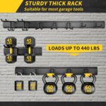 Heavy Duty & Sturdy: Crafted from premium quality, heavy-duty alloy steel materials, holds up to 440LBS. And UUP garage storage is double powder-coated to protect it from rusting & improve its durability, resist chipping and cracking. The hanging arm of the hooks is covered with rubber to prevent tools/shovels from slipping. The rugged construction ensures it can handle frequent use and endure the weight of your tools, long-lasting and sturdy.